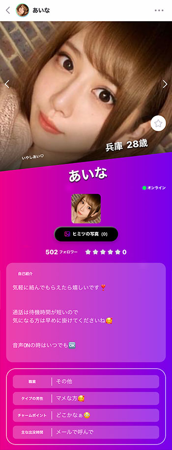 プロフのメッセを見てわかる通り、通話のスタンバイができている子が多い。